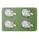 Diseño divertido de ovejas con un patrón de ovejas de estilo personalizado sobre un fondo verde.