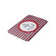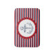Diseño náutico con decoración de ancla dibujada a mano sobre fondo rayado azul, rojo y blanco