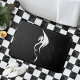 Perfil lateral de un dragón blanco de tinta tribal en un fondo de negro.