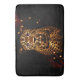 Eclipse Majesty, exhibe un leopardo con piel dorada brillante y puntos distintivos, ambientados en un fondo oscuro. Los ojos del leopardo están iluminados con un color violeta brillante, lo que crea un efecto místico y sorprendente. El entorno oscuro se ve acentuado por unas luces dispersas y cálidas que le confieren al lugar una atmósfera dramática casi de otro mundo.