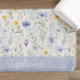 Elegant Blue Purple Watercolor Wildflower Name Bath Mat