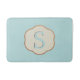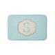 An elegant Robin's Egg Blue bath mat with a copper colored fancy edging around your initial.