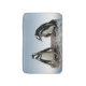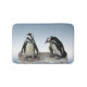 Esta estera de baño ofrece los pingüinos africanos adorables que se oponen en una repisa rocosa a un fondo del azul de cielo. Los pingüinos son los pájaros acuáticos, flightless cuyas alas tienen aletas convertidas. Cada uno tiene una raya negra y puntos negros en el pecho. El modelo de puntos es único para cada pájaro, apenas como huellas dactilares humanas. Tienen glándulas rosadas sobre sus ojos y pies rosados y negros.