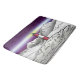 Un ilustracion paisajístico del faro de Les Eclaireurs, situado en la zona sur de Argentina, el faro y las montañas están pintados en blanco y negro. El cielo nocturno tiene un color púrpura y está iluminado por el faro.