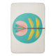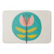 Diseño artístico abstracto de los años 50 con una flor rosa salmón con hojas verdes de chartreuse contra un sol turquesa, hecho en un estilo moderno de mediados de siglo.