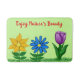 flores de bonito en la hierba verde del jardín con flor dorada amarilla, flor azul y tulipán morado con hojas verdes. Con la redacción, Enjoy the Nature's Beauty con escritura roja. Mostrado en un fresco fondo verde claro. Bañera de baño divertida y alegre para usar durante los meses de primavera y verano. Dejar texto o personalizarlo o borrar texto. Agradable para todo aquel que ame la naturaleza y el exterior. Obra gráfica pintada a mano original de TamiraZDesigns.