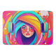Una mujer colorida con audífonos, rodeada de energía giratoria, evoca la alegría del sonido y la expresión creativa (Este diseño hecho con IA). ¡Haga el pedido hoy y acepte la alegría de ir de compras!