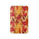 Esta hermosa alfombra de baño muestra colores otoñales de rojo, naranja, amarillo y marrón.