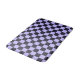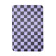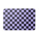 A checkerboard pattern with alternating lavender and black squares fills the image. The repeating geometric design gives a balanced and rhythmic appearance.