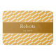 Añada un toque de diseño original a la decoración de su cuarto de baño con esta alfombra de baño de nombre familiar personalizado. Esta moderna alfombra de baño tiene un patrón de fondo de rayas amarillas y blancas y un área dorada para tu apellido familiar y la fecha en que tu familia fue establecida (o texto de tu elección). Esta alfombra de baño es un gran regalo personalizado para una casa caliente, una ducha de novia, un aniversario o un boda, y es ideal para todas las parejas y familias.