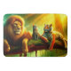 Esta alfombra de baño tiene un león, un tigre y un gato casero encima.
