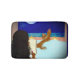 An African American woman/ black woman takes a candlelit bubble bath while reading a book with a moonlit ocean view through her window.