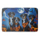 Descanse el espíritu espeluznante con este inquietante diseño de Halloween que presenta una manada de perros bajo un cielo oscuro, iluminado por la luna, rodeados de bates voladores y calabazas brillantes. Perfecto para los amantes de la diversión con sus peludos amigos.