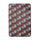 Tapa de baño en un patrón clásico japonés de kimono de grúas estilizadas, dispuestas en un patrón de hexágonos, en rojo profundo, gris claro y mediano, sobre un fondo negro