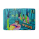 La foto de esta alfombra de baño tiene dos sirenas y un hombre relajándose en su pueblo arbolado cerrado, escondido en las profundidades más oscuras del océano. Si vas por un tema oceánico en tu baño, esto sería perfecto.