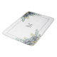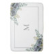 El diseño presenta un ramo de vegetación eucalipta y hermosas hortensias con un borde gris liso.