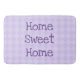 Esta bonita alfombra de baño tiene un patrón de diamante ocupado en color púrpura y lila. Un bonito y moderno diseño "Home Sweet Home" para su cuarto de baño o ducha. Para cambiar el texto, haga clic en el botón de personalización.