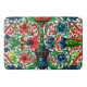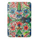 Adaptado de un manuscrito medieval, un ilustracion pergamino de jarrones, flores y rollos en brillantes tonos de joyas.