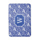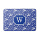 Reproducción digital de una alfombra de baño adamascada de Art Nouveau con una textura estriada tejida de Ikat y un monograma personalizado - Blanco sobre un fondo azul cobalto profundo