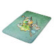 En suaves y fríos tonos de verde esmeralda, agua, cal, azul, amarillo y melocotón, esta elegante alfombra de baño presenta una original pintura con grabado, acuarela y efecto tinta de un par de pollo encaramado en una rama de árbol con flores primaverales del artista digital Leslie Sigal Javorek.