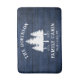 Una elegante alfombra de baño rústica de estilo rústico, con su nombre y "Cabina Familiar", Rancho, Cabaña u otro texto junto con su fecha y ubicación establecidas si lo desea. Este diseño personalizado y único presenta un texto rústico de estilo rústico con una silueta blanca de pinos sobre una huella de tablas de madera de colores azules. Para ver más diseños como este, siéntase libre de visitar mi tienda aquí en "Zazzle.com/Rustic_Charm". ¡Gracias.