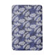 Hojas de palmera blancas en un fondo azul índigo, recubiertas con más palmeras azules.