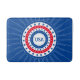 Consigue esa vitalidad Americana con estrellas y rayas festivas en círculos de rojo, blanco y azul patrióticos. Añada sus propias iniciales o monograma familiar al centro para una estera de baño personalizado con bengalas del 4 de julio. ♡ Idyllfire