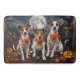 Descanse el espíritu espeluznante con este inquietante diseño de Halloween que presenta una manada de perros bajo un cielo oscuro, iluminado por la luna, rodeados de bates voladores y calabazas brillantes. Perfecto para los amantes de la diversión con sus peludos amigos.