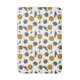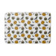 Esta divertida alfombra de baño de Halloween presenta el truco retro Jack o' Lantern para tratar cubos, cuervos y gatos negros festivos colocados sobre un fondo blanco.