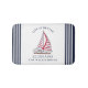 Crea accesorios únicos de baño náutico personalizados para tu casa del lago. La vida es mejor en el lago diciendo está decorado con un ilustracion de velero con velas rojas y blancas y rayas azul marino y blanco. La plantilla facilita la personalización de esta alfombra de baño náutico con su nombre o apellido.