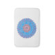 Hand- drawn Mandala on a bath mat. Blue mandala with pink centre to highlight.