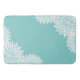 alfombra de baño azul bonito, con gráficos de flores grandes blancas, en las esquinas inferior izquierda y superior derecha. Personalizar para agregar su propio texto. Viene en tres tamaños.
