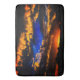Esta alfombra tiene una puesta de sol nublada en ella.