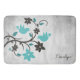 El baño incluye una Verde azulada estera de baño personalizada Lovebirds. El diseño de la alfombra de baño incluye un par de aves adorables adornadas con una vina floral y un área que puedes personalizar con tu nombre. Se ofrecen regalos adicionales con este diseño, así como una variedad de colores.