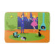 Esta Pareja Retro Romántica Pareja Bath Mat parece una escena de una comedia romántica de los años 60. El diseño minimalista cuenta con una atractiva pareja de personalizados en la sala de estar de un moderno apartamento urbano de mediados de siglo. La sala cuenta con una pared de piedra verde, con un ventanal que da al suelo y al techo. A través de la ventana podemos ver la silueta azul de un horizonte de una gran ciudad. Una luna creciente es visible en el cielo naranja de la puesta de sol. El mobiliario de la habitación incluye una tumbona verde a juego con un taburete a pie de página, un amarillo, una luz sputnik y una chimenea turquesa con forma de cono y una chimenea. En el centro del parqué naranja, hay una alfombra redonda y verde. En la alfombra se coloca un reproductor de discos portátil, turquesa y negro. Junto al reproductor de discos, se puede ver un disco de vinilo saliendo de la portada de un álbum kitschy. También en la alfombra hay un gato negro y elegante vestido con un collar verde azulado. Este lujoso felino está sentado frente a un vaso de martini. Disfrutando de esta escena, tenemos una pareja muy sofisticada. Hay un hombre elegante con traje azul, camisa azul clara y corbata roja. El hombre alto, oscuro y guapo está disfrutando de la compañía de una mujer rubia elegante. La encantadora dama está usando un vestido rosado caliente con una forma que encaja los corpiños y la falda florida. Cada una de ellas sostiene un cristal de martini de cristal con una oliva flotante. Salud! ¡Aquí está la velada perfecta en casa!