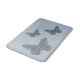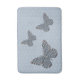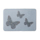 Las alas y el cuerpo de una mariposa monarca están decorados con diseños inspirados en los patrones de los suéteres que se encuentran en los países nórdicos de Noruega, Suecia y Finlandia, con motivos como copos de nieve, montañas y árboles verdes en blanco, azul, verde y gris con acentos rojos brillantes.