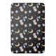 Un patrón fresco con estrellas felices, luna, nubes y arcos sobre un fondo negro. El fondo negro le da un efecto de noche.