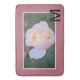 Monogram initial in black. Pastel pink yellow rose flower against white geometric frrame. Pretty rose gold color background. Original Photography and Design © TamiraZDesigns.