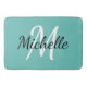 Estera de baño con fondo azul verde azulado claro y monograma personalizado blanco primer y primer nombre.
