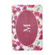 Un marco atrevido, luminoso y colorido de amapolas rosadas moradas hace una declaración en esta alfombra de baño. En el centro hay un color sólido que combina el óvalo rojo burdeos con el monograma en blanco. Esta alfombra de baño combina con cortinas de ducha y toallas en nuestra tienda para un aspecto de decoración completa.