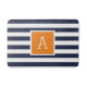 Alfombrilla De Baño Monograma de franjas de naranja y marina