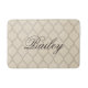 Alfombra de barro de baño impreso en personalizado con un patrón de cuatrefoil marroquí de moda y textura de imitación rústica de lino. Personalízalo con tu nombre monograma u otro texto personalizado. Haga clic en Personalizar para cambiar texto y tipos de letra para crear un regalo único de un tipo.