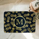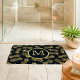 Alfombrilla De Baño Monograma de Patrón de Piña Dorada Azul Marino