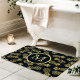 Alfombra de Baño con Monograma de Patrón de Piña Dorada Azul Marino. Hermoso y elegante diseño de patrón de piña tropical azul marino y dorado. Personalice este diseño personalizado con su monograma.