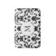 Patrón moderno de damasco negro sobre fondo blanco con monograma.