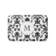 Alfombrilla De Baño Monograma elegante de damasco negro