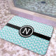 Alfombrilla De Baño Monograma Turquesa Azul Azul Patrón de Chevron Bla