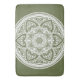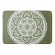 Esta mandala blanca se asienta sobre un musgo oscuro o un fondo verde oliva. Los colores son armoniosos y equilibrados. Parte de la colección Bardh Mandala.