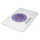 Tapa de baño blanco con una flor de loto espiritual morado mandala impresa y un texto personalizado de Namaste. La decoración del baño coincide con la del ScriptoGraphic Design Store.
