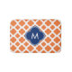 Naranja monograma y patrón de quatrefoil blanco con tapete de baño azul real. patrón de quatrefoil naranja sobre blanco.